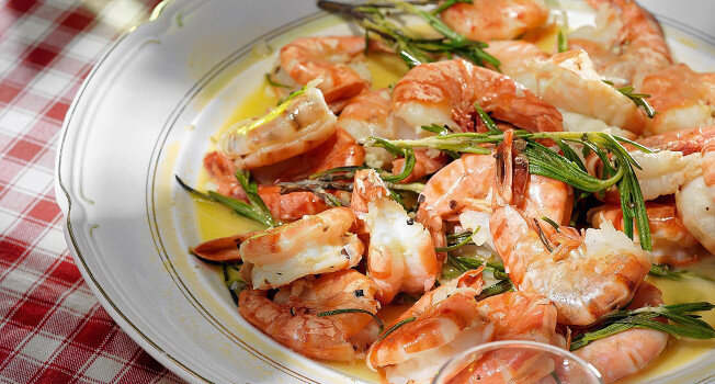 Чтобы креветка не просто была нежной, но и сохранила насыщенный вкус, ее можно сварить в бульоне. Бульон этот лучше всего сварить накануне: из креветочных панцирей, лаврового листа и черного перца. Креветочный хитин — главный источник вкуса в креветке, и выкидывать его — большая ошибка».