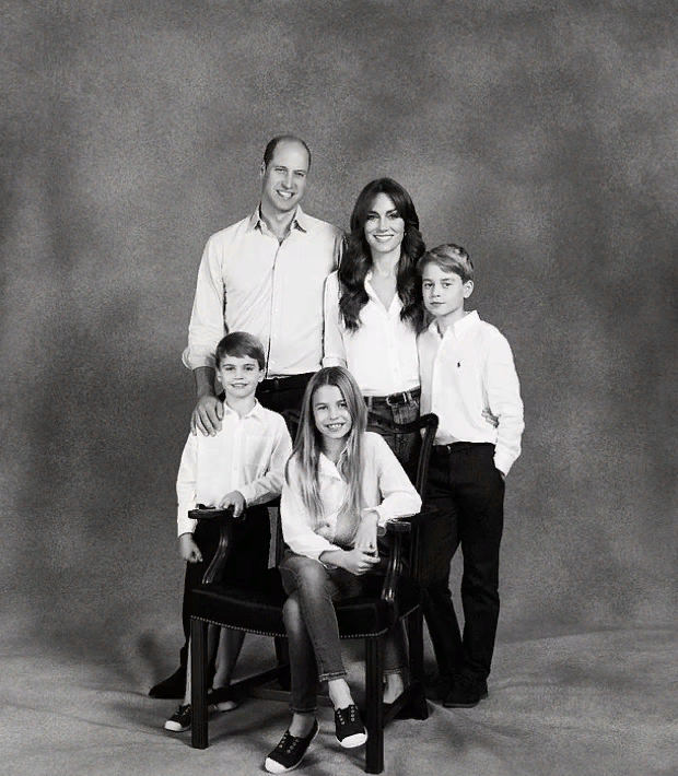 В субботу принц и принцесса Уэльские выпустили свою ежегодную рождественскую открытку. Классическая чёрно-белая студийная фотография, сделанная Джошем Шиннером, сотличается от привычных цветных снимков семьи на природе. Эффектный кадр, очень красивая семья: Уэльсы на фоне стены все в белых рубашках, девочки в джинсах, мальчики в тёмных брюках, Луи в шортах, младшие обуты в простые кеды. Последовало неизбежное сравнение с принцессой Дианой - она любила подобные съёмки. Интересно, только у меня возник вопрос: что с рукой Луи? Специально пересмотрела старые кадры - всё в порядке. Никакой информации, что у маленького принца были травмы, не проходило. Даже создаётся впечатление работы ИИ, у нейросетей с пальцами часто казусы случаются. У Кейт на руке тоже только три пальца видны. У короля Чарльза и королевы Камиллы открытка более торжественная. Для неё взята официальная фотография с коронации. Выпуск рождественских открыток этого года состоялся после того, как принцесса Уэльская устроила в