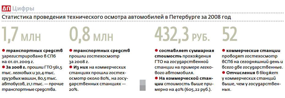 Директор Ассоциации предприятий дорожного комплекса Петербурга Юрий Агафонов уверен, что подобное решение оправдано, если сократит излишек функций ГИБДД и высвободит новых сотрудников для регулирования дорожного движения. "Сегодня большинство автомобилистов проходят техосмотр в частных компаниях, и, несмотря на то что это дороже, требования у тех ничуть не меньше, чем у государственных, соответственно, качество не пострадает", — считает Юрий Агафонов.