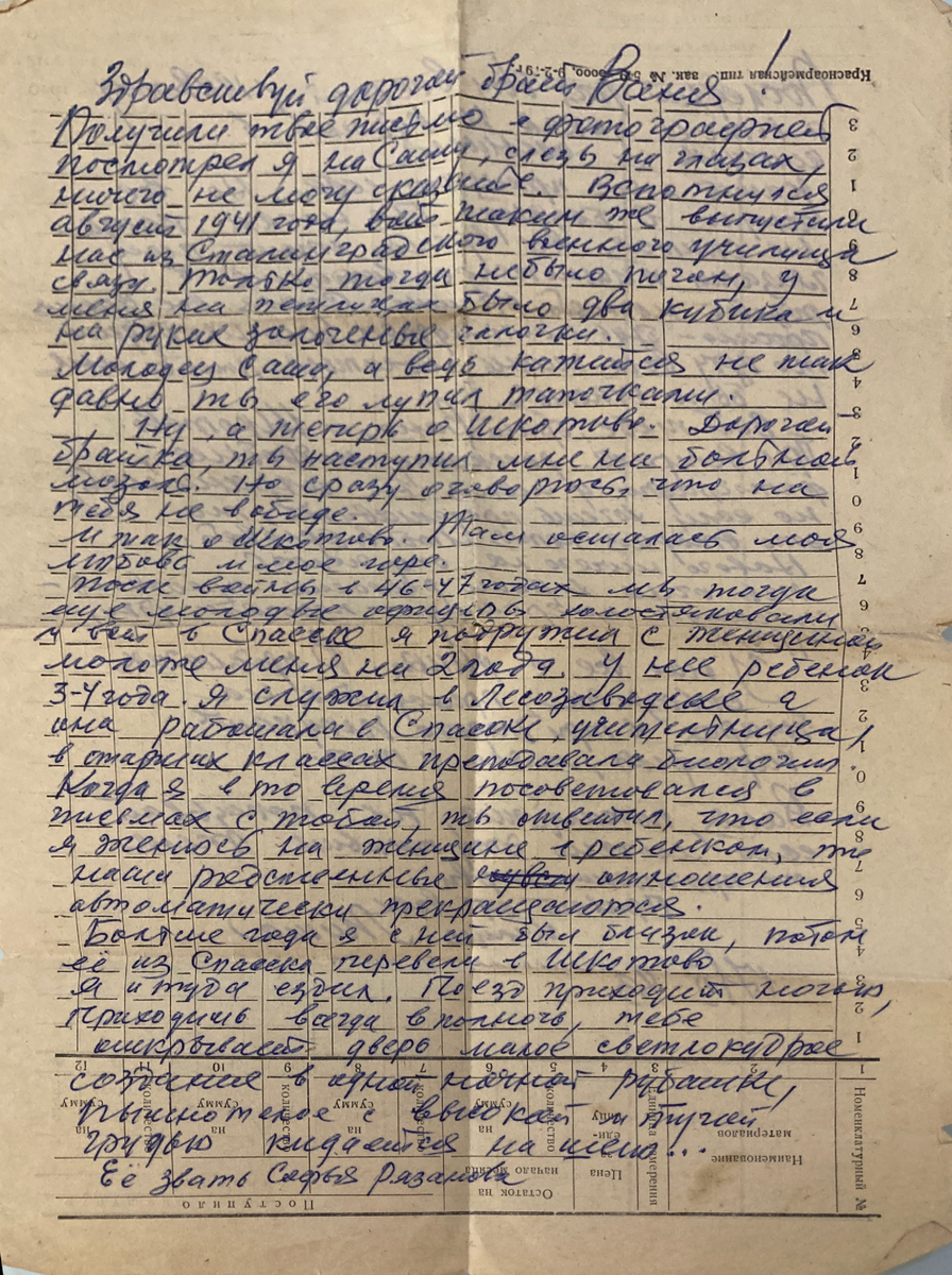 Я нашла письмо в одной из книг, которые мне достались от знакомых. Когда я читала его, слёзы непрерывно текли из моих глаз. Потом читала мужу, и мы вместе плакали. Письмо написано мужчиной, которого давно нет в живых, как нет и его брата, которому он поведал свою историю любви. В письме есть имена, и место действия этой драмы названо. Может быть, кто-то из читателей узнает героев этой непростой жизненной истории, и отправит его детям героини, чтобы они знали, что любовь была и осталась до конца жизни с тем, кого она искренне любила. Здравствуй, дорогой брат Ваня! Получили твоё письмо с фотографией, посмотрел я на Сашу, слёзы на глазах, ничего не могу сказать. Вспомнился август 1941 года, вот такими же выпустили нас из Сталинградского училища связи. Только тогда не было погон, у меня на петличках было два кубика и на рукавах золочёные галочки. Молодец Саша! Ну а теперь о Шкотово. Дорогой братка, ты наступил мне на больную мозоль. Но сразу оговорюсь, что на тебя не в обиде. Итак, о Шкот