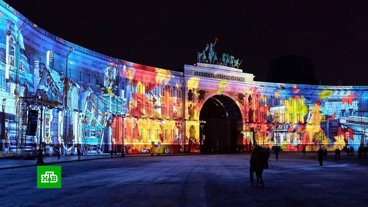 [ Смотреть видео на сайте НТВ ] В эти выходные на Дворцовой площади Санкт-Петербурга проходит грандиозное световое шоу. Оно приурочено к Дням Эрмитажа, которые музей отмечает ежегодно в начале декабря. Мультимедийная программа посвящена истории Северной столицы. Также во время шоу на фасадах исторических зданий презентуют работы финалистов всероссийского конкурса «Страна света», где авторы с помощью проекций рассказывают о разных регионах нашей страны. Весь вечер с фасадами исторических зданий на Дворцовой площади в Петербурге происходят удивительные превращения. Напротив одного Эрмитажа появляется еще один, стены Главного штаба эффектно меняют очертания, а то и вовсе исчезают, и люди оказываются внутри дворца. Фасад этого знаменитого архитектурного ансамбля в длину около 500 метров, а его площадь более 6 тысяч квадратных метров. Получается один из самых масштабных широкоформатных экранов. Это очередное посвящение Петербургу в год его 320-летия — рассказ мультимедийных художников об ис