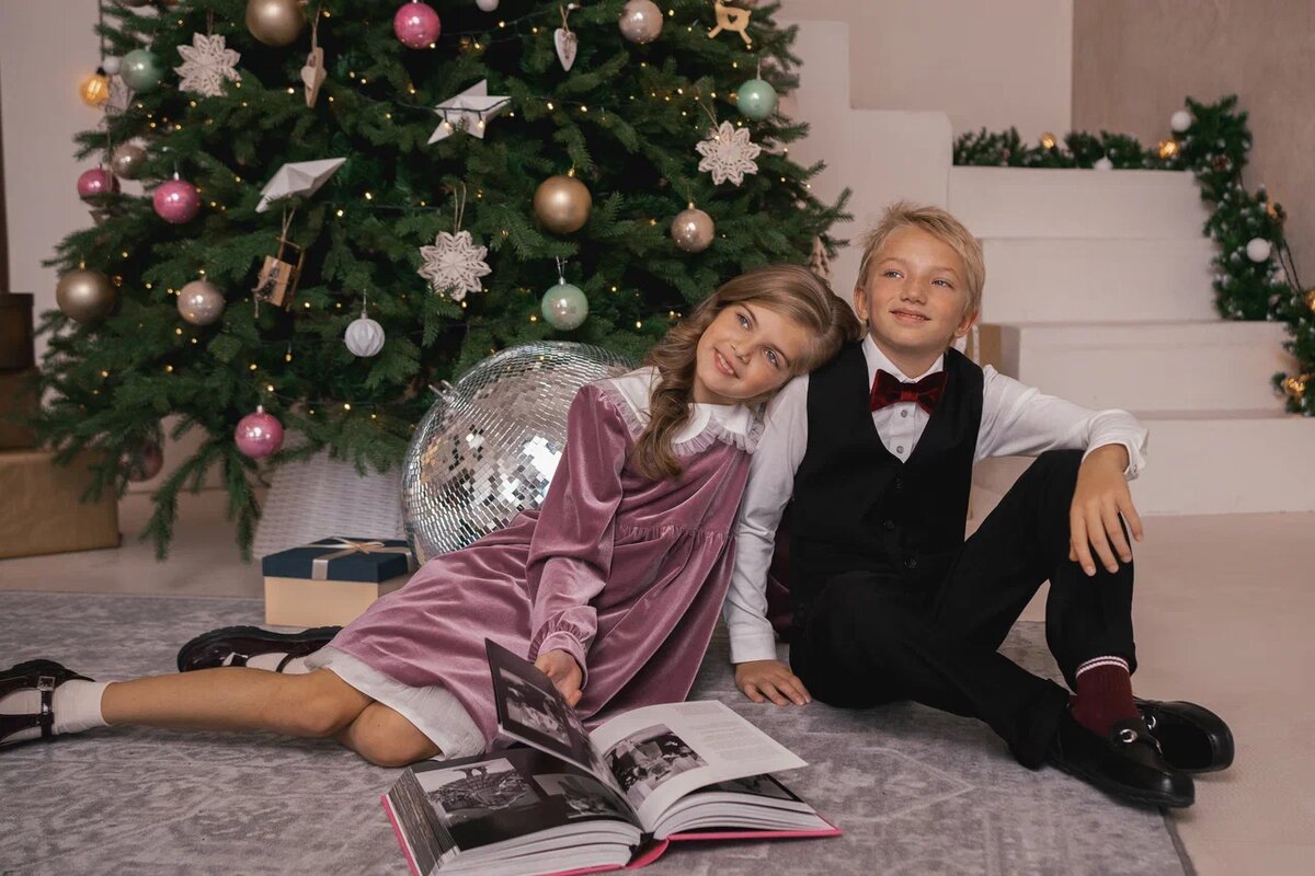 Герои этой истории для рождественского и новогоднего вечера в загородном доме, в кругу большой красивой семьи выбирают бархат, шифон и кружевные воротнички; жилеты и отутюженные рубашки с бабочкой; мамины украшения и ее же слегка великоватые любимые туфли.