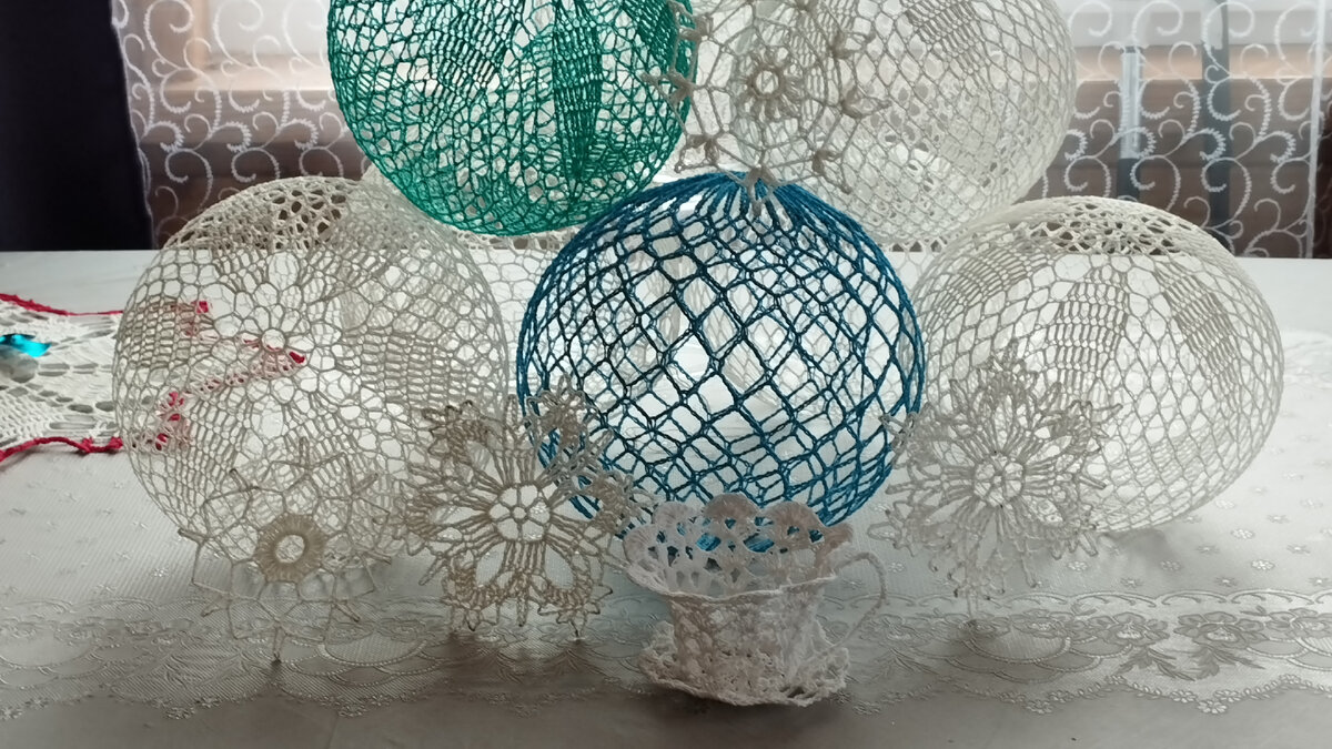 Добрый день! Заканчиваю эпопею с вязанием новогодней атрибутики,если честно уже надоело. Подарков хватит на всех. В общей сложности связала 17 шариков и целую кучу снежинок)) Некоторые уже забрали на конкурс. Этот самый маленький. Изобразила и такую чашечку. Ещё навырезала целую кучу вот таких снежинок на окна. Сегодня буду наклеивать. Мне нравятся на окнах такие крупные снежинки. На улице морозно,птички кушают. На большом куске ,если приглядеться,сидит зелёный дятел. Снегирей много,но не успеваю их фотографировать,тут же улетают. Пока. Всем Мира и Добра!
