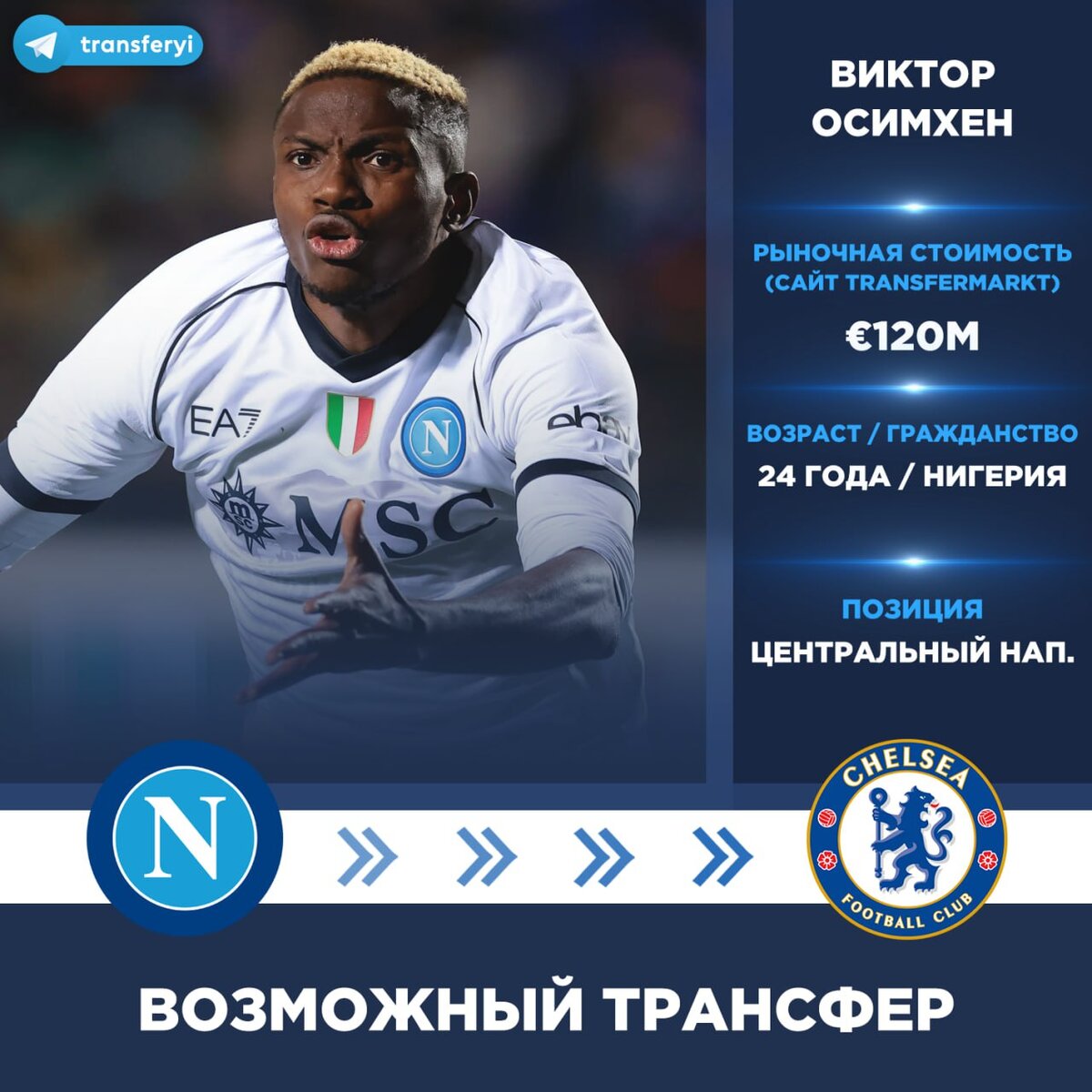 «Челси» планирует купить игрока «Наполи» Виктора Осимхена в 2024 году.