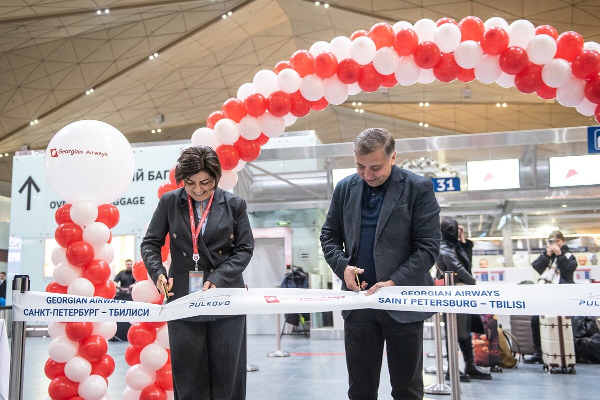 В аэропорту Пулково первый рейс встретили Асият Халваши, директор по авиационной коммерции компании «Воздушные Ворота Северной Столицы», и Роберт Оганесян, первый заместитель генерального директора авиакомпании Georgian Airways.