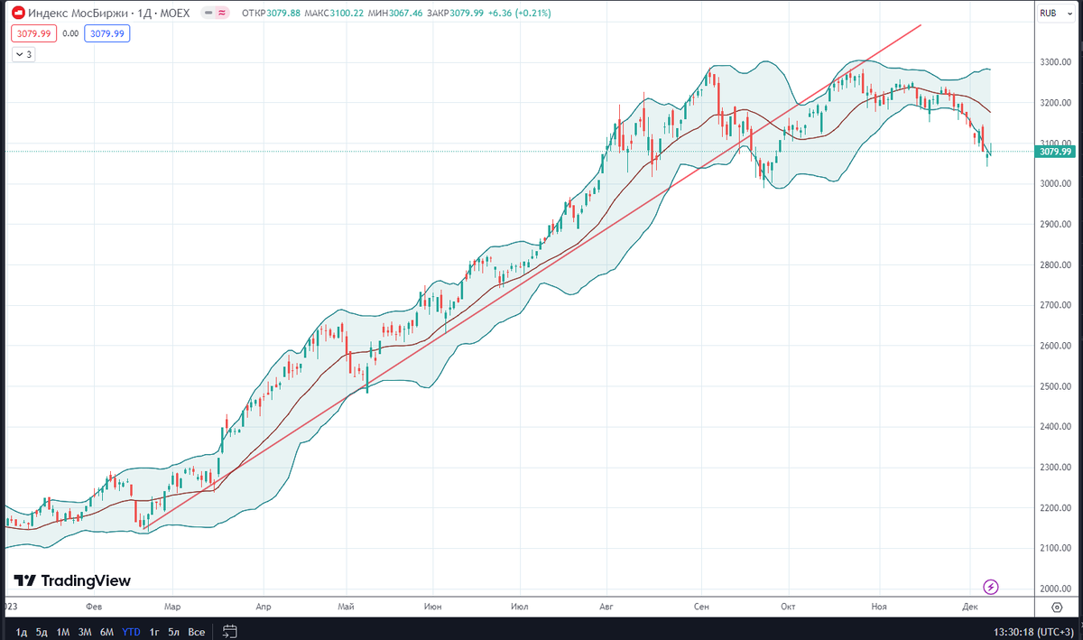 Основное давление на рынок акций оказывает высокая ключевая ставка и существует большая вероятность её повышения 15 декабря 2023 года.