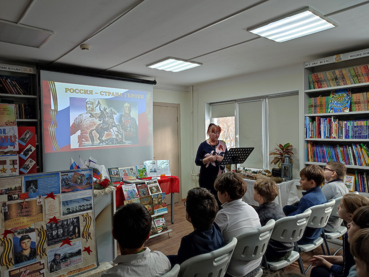 9 декабря наша страна ежегодно отмечает памятную дату великой истории России – День Героев Отечества. Этот день посвящен всем тем людям, чьи сила духа, честь и доблесть стали примером проявления наивысших нравственных человеческих качеств и ответственности перед Отечеством, которые заслуженно зовутся Героями. Накануне праздника, 7 декабря, Библиотека семейного чтения пригласила ребят из 4 классов школы № 2117 на патриотический час «Да здравствуют Отечества герои, Отчизну заслонившие собой!». Ведущая Анжелика Комарова познакомила школьников с историей возникновения праздника, с учреждением ордена Святого Георгия Победоносца. Дети узнали имена первых кавалеров ордена Святого Георгия, героев времен Отечественной войны 1812 г., Великой Отечественной войны. Поговорили и о героях нашего времени – участниках Афганской и Чеченской войн, героях Сирии и Офицерах группы «Вымпел» и «Альфа». Отдельно отметили подвиги боевых офицеров, которые участвуют в специальной военной операции. Сегодня,