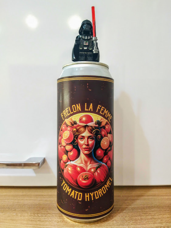 Ну ладно, все таки это медовуха. Просто, заголовок вот такой захотелось забубенить))) Прошлая томатная медовуха, которую я пробовал, была острая и она мне понравилась, если бы не перец. Потому, было принято решение взять такую же, но не острую. Сказано - сделано))) Картинка на этикетке какая-то криповая. Есть подозрение, что ее нарисовала нейросеть. Но это не точно))). Frelon La Femme переводится с французского как "шершень женщина". Видимо, обыгрывается фраза "Шерше ля фам"(Cherchez la femme) - Ищите женщину. В том смысле, если мужчина совершил преступление, то надо искать женщину, из-за которой это произошло. Понятно, что мой канал читают взрослые люди и сами все знают, но вдруг эту статью прочитает ребёнок лет 18-19-ти?))) Что про саму томатную медовуху? На этикетке написано следующее: Медовый напиток с добавлением томатной пасты, богатой смесью специй и пряных трав. "Медовуха из Старого Аманака Шершень ля Фам". Состав: вода очищенная, мёд натуральный, паста томатная, паприка моло