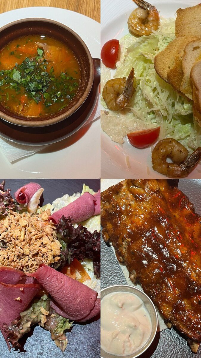 Всем привет, дорогие друзья! Решили наконец-то снять для вас видеообзор на ресторанчик The Бык. Это уже вторая попытка снять там видео и я начинаю подозревать, что это какой-то заговор. Вика прибыла на место пораньше и всё заказала. Я мчал с работы, напевал различные мотивчики и проговаривал скороговорки. В общем, готовился вещать о вкусняшках за 300 рублей на камеру. Итог печальный - оказалось, что мы забыли петлички для звука. Без них я сниматься отказался. Именно благодаря этой череде событий вы сейчас читаете эту статью. Поставьте лайк, чтобы мы ничего не забывали)) Итак, начнём! Салат Пастрами В составе говядина Пастрами, запечённые перцы, микс салатов, лук фри и медово-горчичный соус. Подача супер. Слоями выложены листья салата, перцы и посыпаны луком фри. По кругу кусочки Пастрами. Красота! Все ингредиенты свежие, но некоторые листы салата с горчинкой. Такое может случится и со свежим продуктом, но я бы предпочитал, чтобы на кухне был контроль качества продуктов. Увы, тут минус