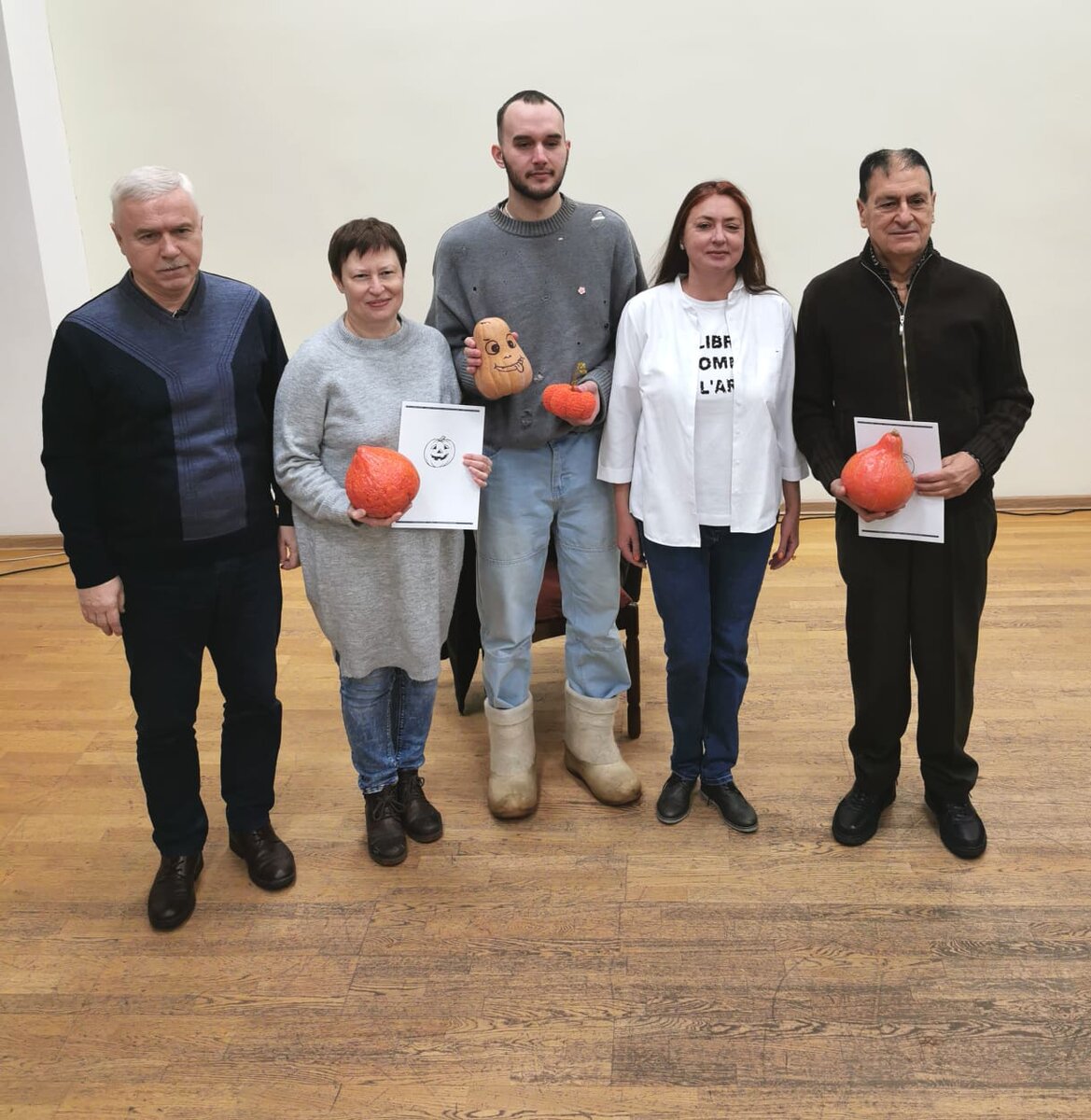 19 раз в Твери состоялось литературное Тыква-шоу! Таким образом Тверской союз литераторов на свой оригинальный манер подводит итоги писательского года. Марина Батасова, Александр Сорочан и Евгений Петренко, отмечая тех, кто выразительно владеет словом, из Твери или связанных с ней, присуждают им самую гуманистическую премию "Золотая тыква", беспокоясь о голодных литераторах. На этот раз с грустью необходимо отметить, что солнечные овощи, заботливо выращенные на писательском подворье, практически все уехали в Москву. Па-бам! Золотая тыква за лучшую книгу вручена поэту, председателю Московского союза литераторов Валерию Галечьяну за книгу «Визуальная поэзия». Автор постарался наглядно, в картинках, как и полагается для визуального творчества, посвятить слушателей в суть вопроса. Все старательно внимали, хоть было непросто) И кстати, своему рождению книга обязана Твери - Александр Сорочан пригласил Валерия прочитать лекцию студентам ТвГУ, а в процессе подготовки был собран ценный матери