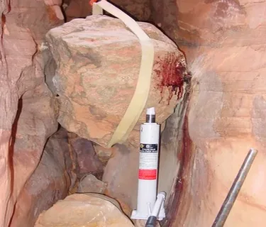 Американец Арон Ралстон отправился на прогулку по каньонам Юты , никого не предупредив об этом. После обвала горной породы в одной из расселин, 27 летнего альпиниста зажало между многотонных камней. Арон 6 дней пытался выбраться, но безуспешно, тогда он взял карманный нож и отрезал омертвевшую часть руки, что помогло ему спастись.
