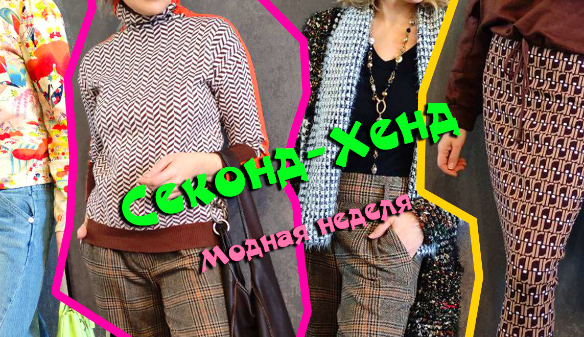 Узоры и фактуры. ---------------------- Всем привет! Меня зовут Ирина, добро пожаловать на мой канал! Сегодня очередной обзор образов с покупками из секонд-хенда – что я носила на прошлой неделе. ---------------------- Понедельник ↓ Яркий розовый джемпер с акцентными рукавами сочетаю с лаконичными темными шерстяными брюками. Дополнила нейтральными черными ботильонами и сумкой с цирком. Мне понравилось как сумка собрала в себе цвета из топа и брюк. ---------------------- Вторник ↓ Сегодня синяя юбка с дизайнерской драпировкой в обрамлении черных деталей. ---------------------- Среда ↓ Оригинальный фактурный кардиган сочетаю с шерстяными брюками в клетку и добавляю меховую сумку, поддерживающую фактуры кардигана. ---------------------- Четверг ↓ Сегодня пончо цвета бургунди сочетаю с кожаными брюками и брутальными ботинками. ---------------------- Пятница ↓ Сегодня микс геометрии и клетки. ---------------------- Суббота ↓ Образ кофе с молоком. ---------------------- Воскресенье ↓ Яркий к