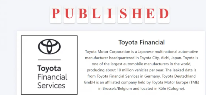 После хакерской атаки группы "Medusa" на Toyota Financial Services компания информирует своих клиентов о нарушении защиты персональных данных. Компания уже отправила клиентам письменные уведомления об "нарушении защиты персональных данных" в ответ на кибератаку в середине ноября, при которой были похищены личные данные клиентов.