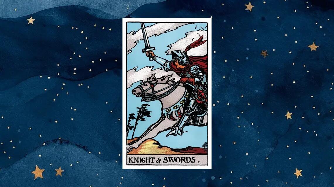 Карта «Рыцарь Мечей» из Младших Арканов — самая резкая и прямолинейная из всех карт. Когда она появляется в раскладе, наши мысли могут скакать со скоростью миля в минуту, или нам нужно быть внимательнее к тому, как мы разговариваем с собой и другими!