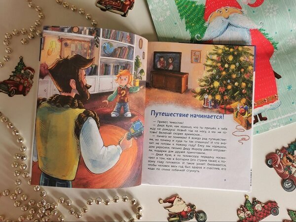 Чевостик и дядя Кузя любят путешествовать. В книге «История новогодних украшений» они отправятся в увлекательное путешествие и узнают, как менялись новогодние украшения с течением времени, кто изобрел гирлянду и из каких материалов изготавливали мишуру. Они увидят, как готовятся к главному празднику зимы в России и в других странах, посетят настоящую фабрику елочных игрушек. Предлагаем вам несколько простых мастер-классов. Вы сможете смастерить красивые украшения для дома, сделать поделки в садик или школу. Рыбка из картона Для изготовления рыбки из картона понадобятся: плотный картон, акварельная бумага, стилус, клей ПВА, дырокол, краска серебряного цвета. Вырежьте из картона силуэт рыбки (нужны две симметричные детали). Продавите параллельные линии на плавниках и хвосте рыбки с лицевой стороны. Чешую сделайте, вырезав из акварельной бумаги при помощи дырокола множество кружков. Приклейте их на основную деталь плотными рядами от хвоста к голове. Склейте обе детали рыбки, проложив внут
