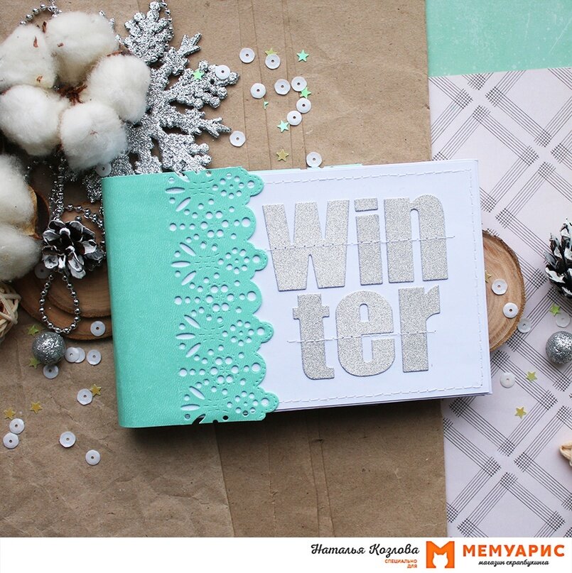 За окном всё укрыто белым снегом, а в душе ожидание чуда! И это непременно побуждает творить зимние альбомчики. Давайте посмотрим, какими чудесными они могут быть. Привет, друзья! С вами Наташа. Мне очень хотелось сотворить белоснежный альбомчик. Но конечно, без ярких акцентов не обошлось! В итоге я ограничилась белым, бирюзовым и черным. Оформление обложки минималистичное. Буквы вырубила из глиттерной бумаги. Кстати, в качестве альтернативы можно было бы взять зеркальный картон! В Мемуарисе недавно совсем появился, это что-то нереальное! А корешок украсила кожзамом, преобразила его с помощью ножа Mimi cut «Кардинал Ришелье». В альбоме четыре разворота, и три кармана для дополнительных фото. В их основе бумага для акварели. Далее давайте рассмотрим развороты и все детали поближе. В их оформлении неподражаемые ножи Mimi cut: «Хюгге», «Присядьте, пожалуйста!», «Канцтовары», «Домашние джунгли», «Мой номер один», «Снегопад», «Самое важное», «Ёлки-палки». А благодаря ножам «Марроканский чай