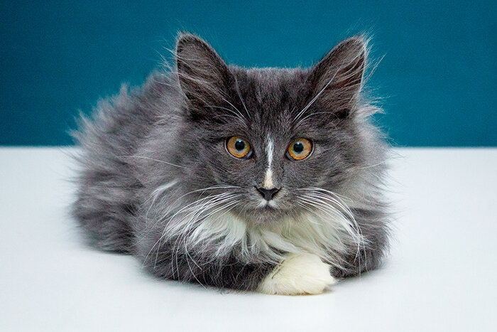 Косматый котенок Милки Мяу благодаря улыбке удачи и счастливой случайности был спасен с автостоянки, прямо из-под колес машин. После заселился на временное содержание в стационар ветеринарного центра.