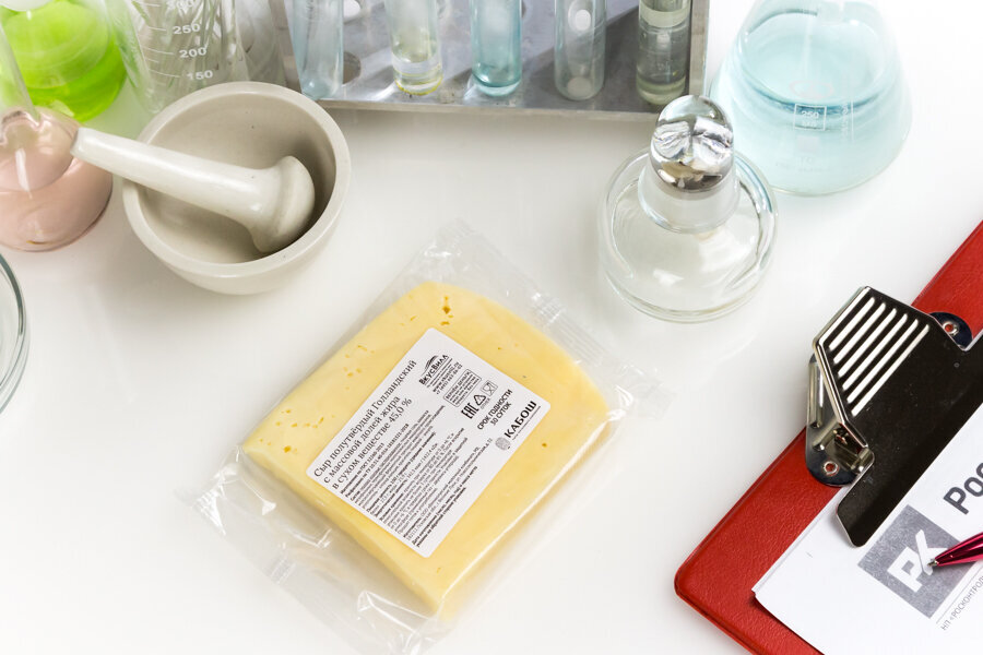 - По проверенным физико-химическим показателям соответствует ГОСТ 32260-2013, заявленному в маркировке. Образец имеет замечания к органолептическим признакам: вкус и запах слабо выраженный сырный, с легкой горечью в послевкусие, консистенция достаточно плотная. Не содержит растительных жиров.