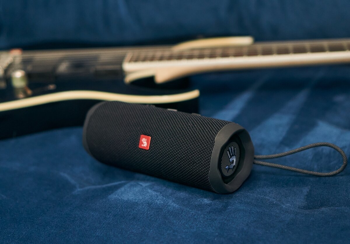 Вообще, я долго думал, что же мне так напоминает внешность A4Tech Bloody S6 Tube, пока не стал гуглить конкурентов для этого обзора. Ну конечно же! JBL Flip 5 — дизайн почти один-в-один, разве что у JBL немного другая кнопка питания, и на «панели управления» на одну кнопку больше. Ну и логотип другой, разумеется. Кстати, у JBL колонка цвета хаки имеется, да и оранжевая тоже.