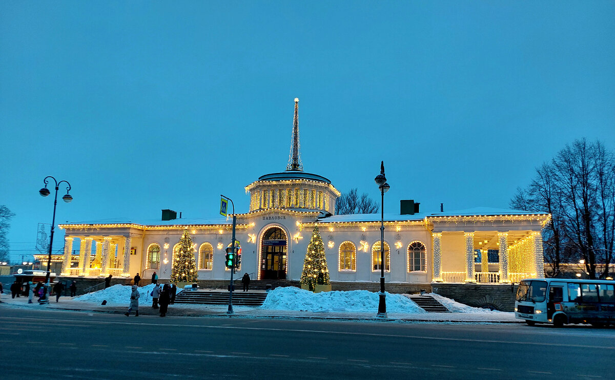 Мне показалось, что в этом году, гораздо более богатое убранство здания вокзала в городе Павловск, пригороде Санкт-Петербурга. Вокзала украшают каждый год, но в этом году огоньков прибавилось. Он выглядит просто сказочно! Я была на вокзале в субботу 9 декабря и застала монтаж данного великолепия. На фото видно машину для монтажников. Работники украшали здание вокзала иллюминацией с утра до глубокой ночи. Я возвращалась с в начале одиннадцатого ночи, а они все ещё развешивали огоньки. Уже в субботу было красиво И ещё такой ракурс покажу с елкой. Особенно мне понравилась Вифлеемская звезда на макушке Потом я поехала в город (через вокзал в Павловске) в понедельник 11 декабря и застала вокзал в полном великолепии Пройти мимо просто невозможно, все фотографируются рядом. Детишек выстраивают в ряд и фотографируют под елкой Со стороны парка просто потрясающий вид. Со стороны электричек, вокзал выглядит не менее празднично. На заборах появились светящиеся снежинки. Таких точно не был