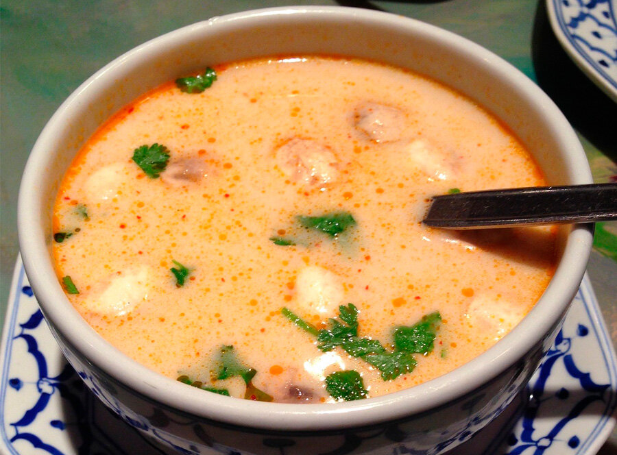 Это всеми любимый тайский кокосовый суп с курицей. Обычно он называется "Том Кха Гай" и является одним из самых популярных тайских блюд. Еще больше интересных рецептов читайте у нас на сайте >> Ингредиенты: Приготовление: Если вы не можете найти галангал, НЕ используйте имбирь. Имбирь не является заменителем галангала. Просто приготовьте суп без галангала.