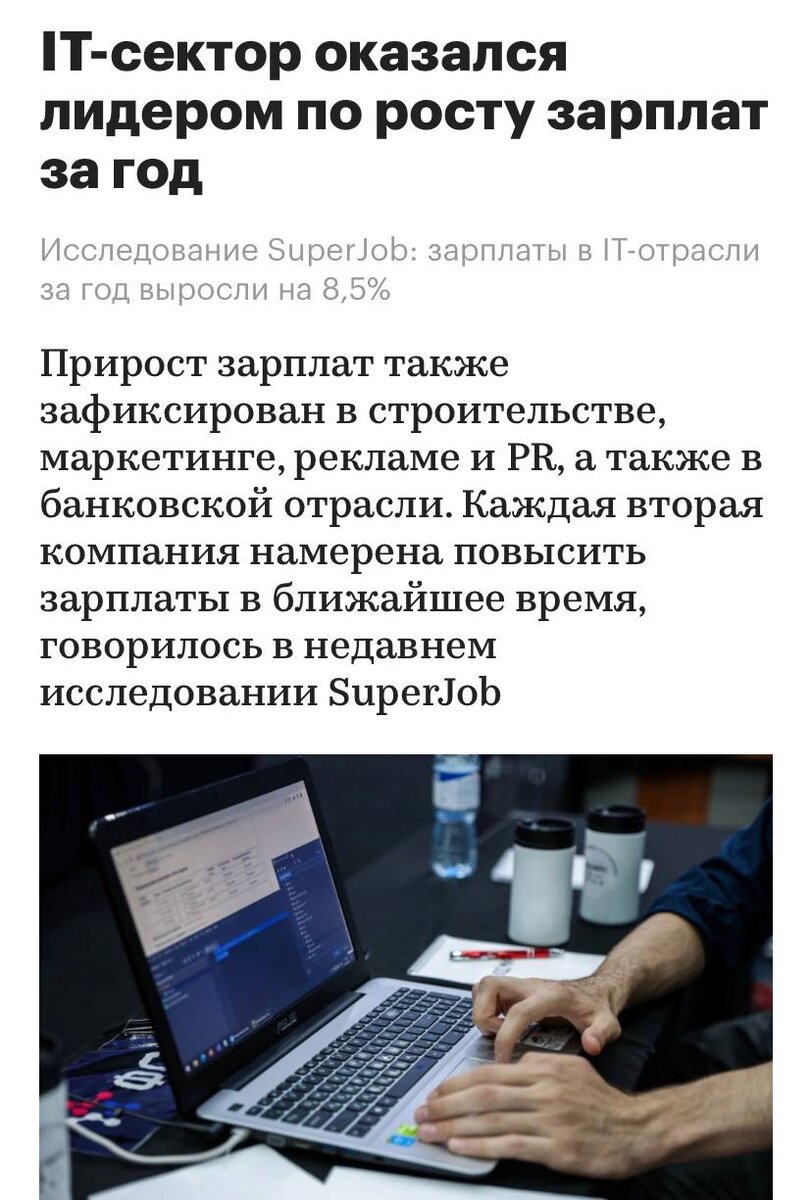 Зарплаты айтишников в 2023 году выросли на 8,5% — эта сфера стала лидером по росту окладов за год.