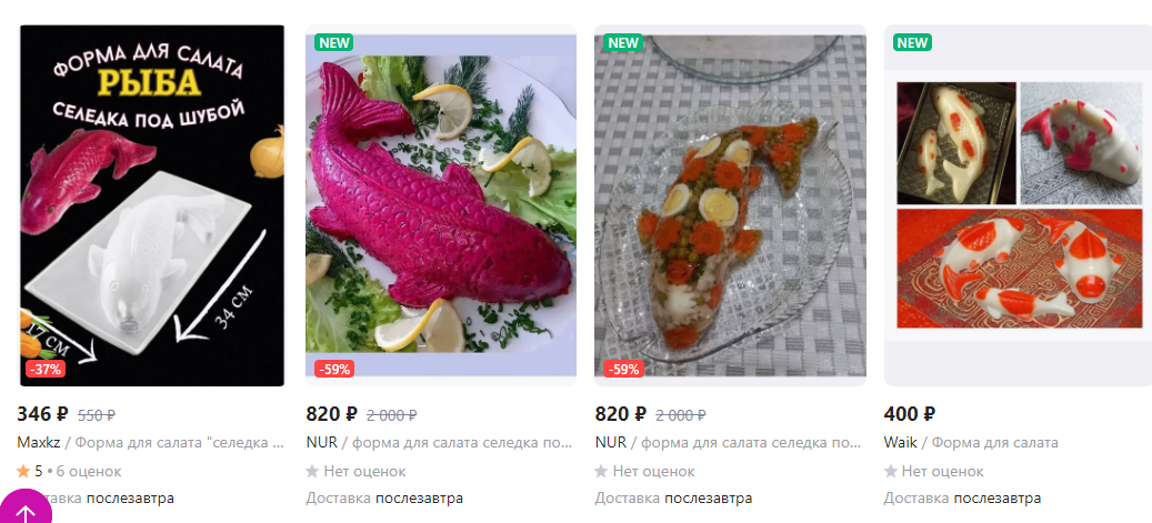 Кому такую же захочется, добро пожаловать на вайлдберриз. Так и ищете: "форма для салата селедка под шубой". Разброс цен - от 8000 (правда есть и за столько!) ну и до 346 рублей)