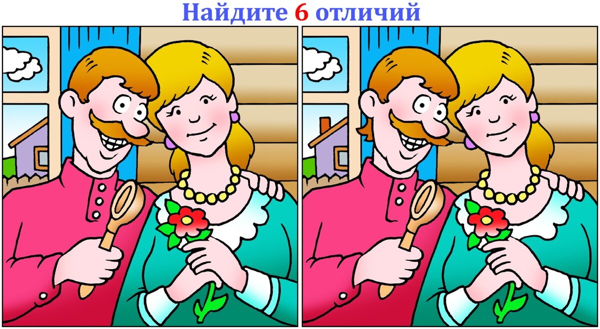 Большинство сказок начинается со слов «жили-были», дальше описывается, кто жил и как всё дело было. Уважаемые, читатели, приветствую вас, и вот что расскажу-покажу. А покажу я вам для начала деда с бабой, тех самых из «Колобка», только в молодости. Выглядели они в более ранние годы , понятное дело, гораздо стройней и здоровей. Вот, пожалуйте посмотреть на них, заодно первое задание расколоть (в этот раз их будет два) Задание №1 называется «Дед да баба в молодости». Найдите на картинках шесть отличий. Как видим, на совместном портрете персонажи пребывают в радостном состоянии. Ещё бы не радоваться! Ведь они запечатлены местным живописцем через пару дней после свадьбы. Дело было так. Как-то поутру, когда в деревне еще не вывели коров на пастбище, пришел к молодоженам художник и предложил: давайте, мол, пока вы в старость не впали, портретик смастерю, навеки вечные останется и вам поглядеть, и остальным поколениям. Если принять во внимание, что фотографический салон в деревне появится нес