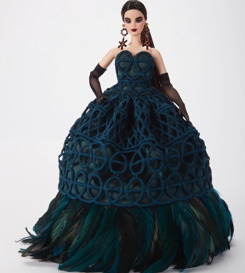 🎄Центральной темой мероприятия было выбрано Рождество и его дух, именно поэтому для наряда куклы дизайнер выбрал такие «праздничные оттенки»: глубокий зеленый и торжественный красный отсылают к праздничной ели, усыпанной шарами.