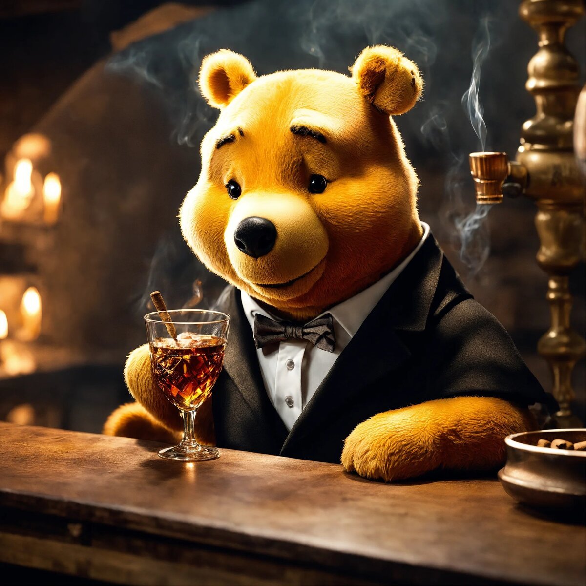 В далеком СтоЛесе жил-был Винни-Пух, медвежонок с прекрасным чувством юмора и необыкновенным аппетитом. Все жители СтоЛеса любили его за доброту и веселый настрой. Но однажды в СтоЛес пришли трудные времена. Главный дон Ёж, который ранее владел всеми лесными делами, решил уйти на заслуженный отдых. Среди лесных обитателей возникла неопределенность. Кто же будет следующим доном? Все глаза обратились к Винни-Пуху. Ему было трудно отказать своим друзьям, и он согласился принять на себя новую роль – быть доном СтоЛеса. Винни-Пух был необыкновенно мудрым доном. Его философский взгляд на жизнь и способность находить выход из любых трудностей сделали его уважаемым лидером. Он умел сглаживать конфликты, помогал всем нуждающимся и даже придумал новые, более справедливые правила для СтоЛеса. Медовый бизнес стал процветать под руководством Винни-Пуха. Он научил лесных обитателей сотрудничать, обмениваться ресурсами и поддерживать друг друга. Вместо того чтобы стремиться к личной выгоде, все стали
