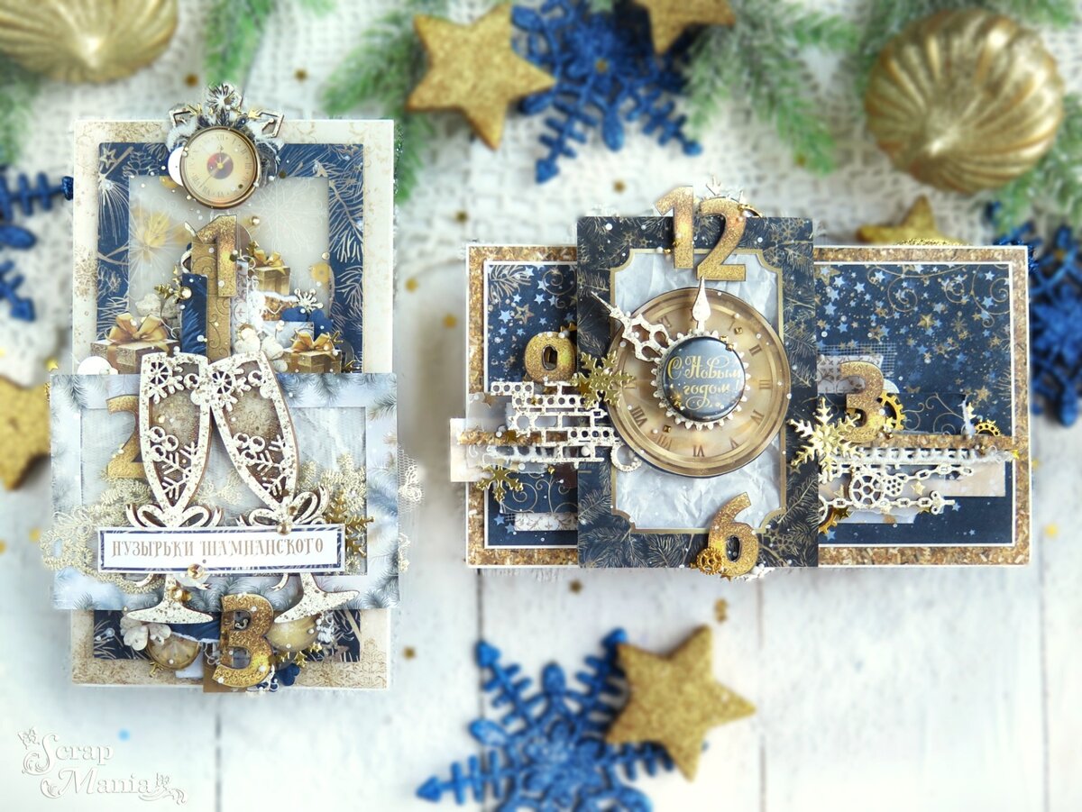 Вся информация по проекту находится в теме в группе вКонтакте, там же можете задавать интересующие вас вопросы Дорогие друзья, доброго морозного денька вам! Сегодня я, Таня Генералова, буду вдохновлять вас на четвёртом этапе нашего самого праздничного совместного проекта "Тёплые открытки-2023". В этот раз моя пара открыток была создана как кульминация Нового года - полночь, бой Курантов, праздничный салют и бокалы шампанского! И творить мы будем нет, не под гимн нашей страны 😉, а под песню из сказочного фильма "Чародеи" - "Снежинка". И вдохновлялись мы, дизайнеры, сточкой "...Пока часы 12 бьют..." Поэтому одним из обязательных элементов будут часы. На четвертом этапе я создавала открытки из коллекции "Фономикс. Новогодний". Эта бумага - новинка этого года, в необычных для новогодних работ цветах. Мы все привыкли, что зима или снежно-голубая, или зелено-красная, а быть может и нежная или уютная. Эта же коллекция в большинстве листов нам показывает новогоднюю ночь, с отблесками салюта