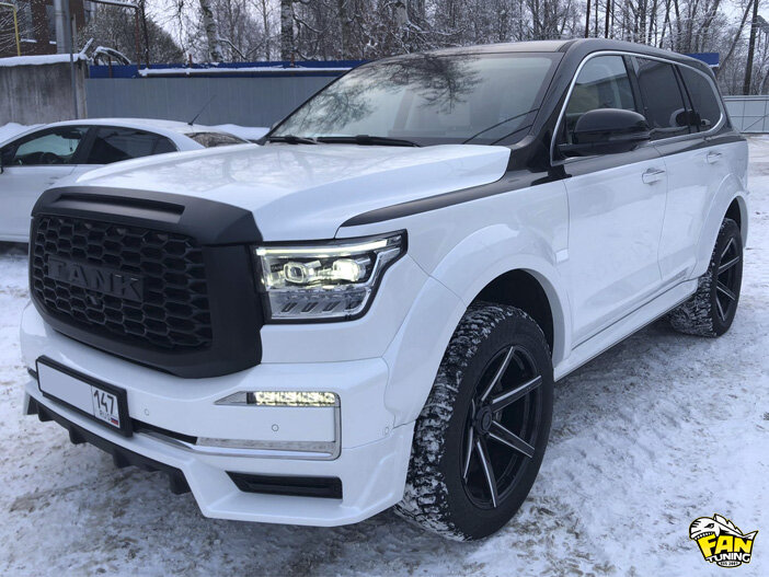 Еще каких-то 10 лет назад никто и не думал, что может быть такое понятие как #тюнинг на китайские автомобили. Но за последние годы #китайцы сделали просто сумасшедший прыжок в автомобилестроении и сейчас лично я уже просто запутался в марках (не говоря уже о моделях) современных китайских авто. Но есть запоминающиеся #модели, которые сразу остаются в памяти. Именно к таким авто относится "китайский #Land #Cruiser 200" - это #ТАНК (#TANK) #500. Как раз такой автомобиль приехал к нам на внешний тюнинг. Причем авто белого цвета, в котором верх был сделан черного цвета, с оглядкой по стилю на #Maybach #GLS. На автомобиль были установлены накладки на бампера и расширители колесных арок. Мы немного доработали накладку на задний бампер под фаркоп и сделали антихром деталей передней и задней накладок.
