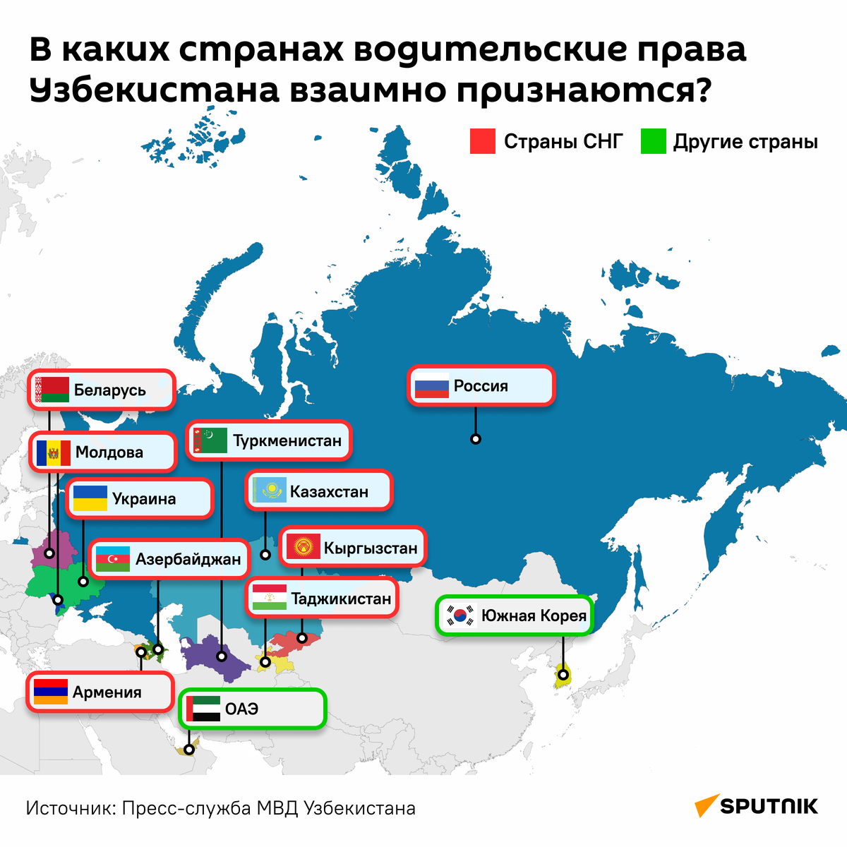 Водительские права Узбекистана взаимно признают 12 стран.При этом, как отмечают в ведомстве, географию стран планируют расширять.Полный список стран смотрите в инфографике