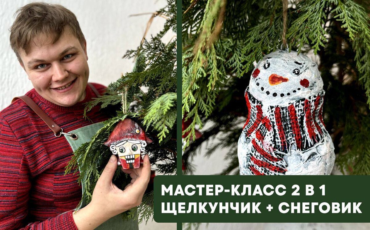 Так вот как тебе идея в это воскресенье на мастер-классе авторской игрушки на Новогоднюю елочку 2 в 1: Щелкунчик + Снеговичок