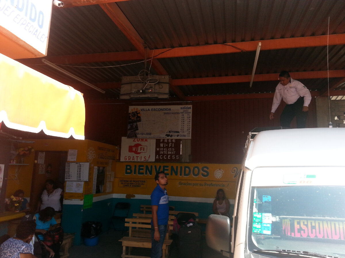 Наконец, несколько неожиданно мы въехали в Пуэрто-Эскондидо, и микроавтобус остановился в районе главного автовокзала.