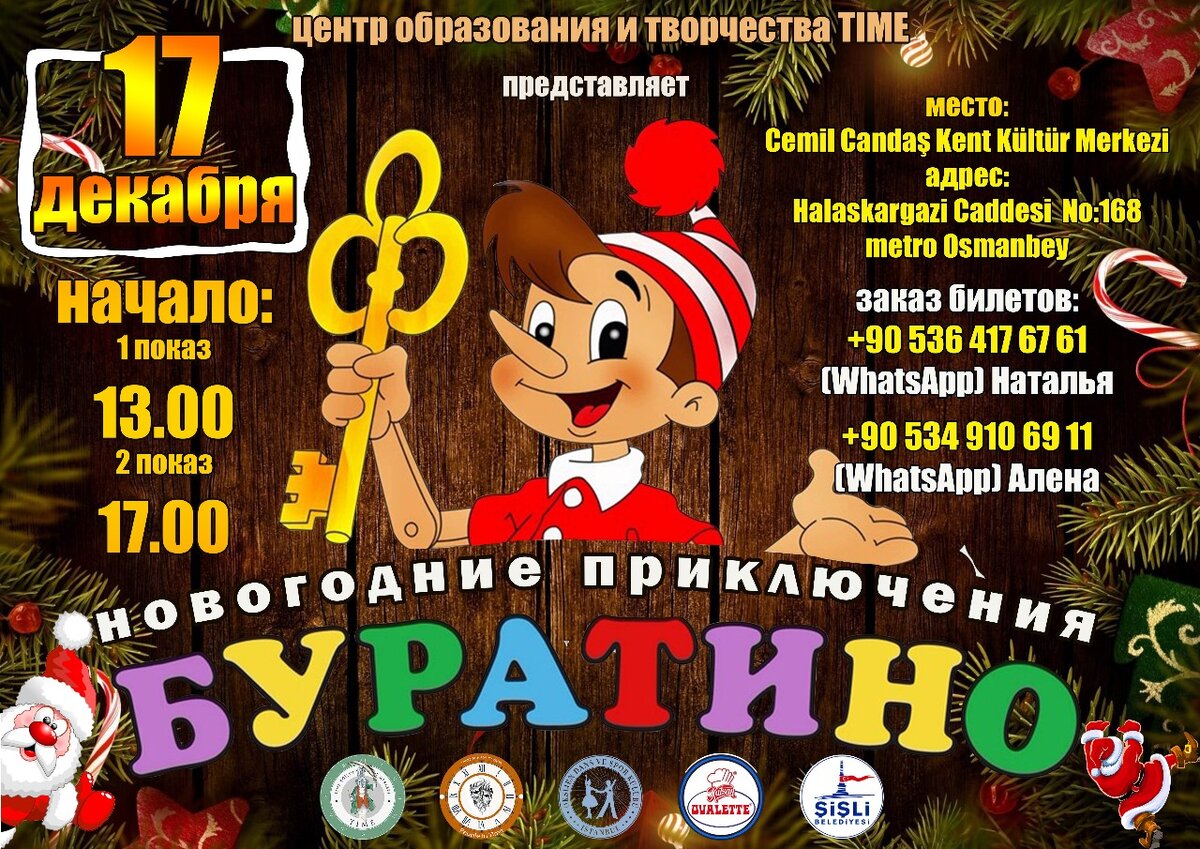💫 Мамы, папы! Уже в это воскресенье! 17 декабря вы приглашены на Новогодний праздник в его лучших традициях. Это когда и театр, и костюмы, и хороводы, и, конечно, Дед Мороз со Снегурочкой. Вас ждет совершенно новая история тех самых «Приключений Буратино и его друзей». Любимые персонажи, таинственные места, яркие костюмы и танцы. Подготовила все это действо команда творческих профессионалов: Режиссер: Дмитрий Мясников Художник-постановщик: Ашот Хачикян Художник по костюмам: Алена Барановская Режиссер по звуку: Михаил Режиссер по свету: Даниил Джейлян Хореографы-постановщики: Юрий Мезокх, Виолетта Дреева, Анастасия Алексеева Художник по гриму: Ольга Джейлян Сценарист: Дмитрий Мясников Художественный руководитель: Алена Барановская Наряжайтесь в новогодние костюмы, захватите хорошее настроение и приходите всей семьей на любимый зимний праздник! Дед Мороз и Снегурочка уже в пути! ☝🏼⚡ Внимание! Просьба приходить за 30 минут до начала представления; для гостей будут организованы фот