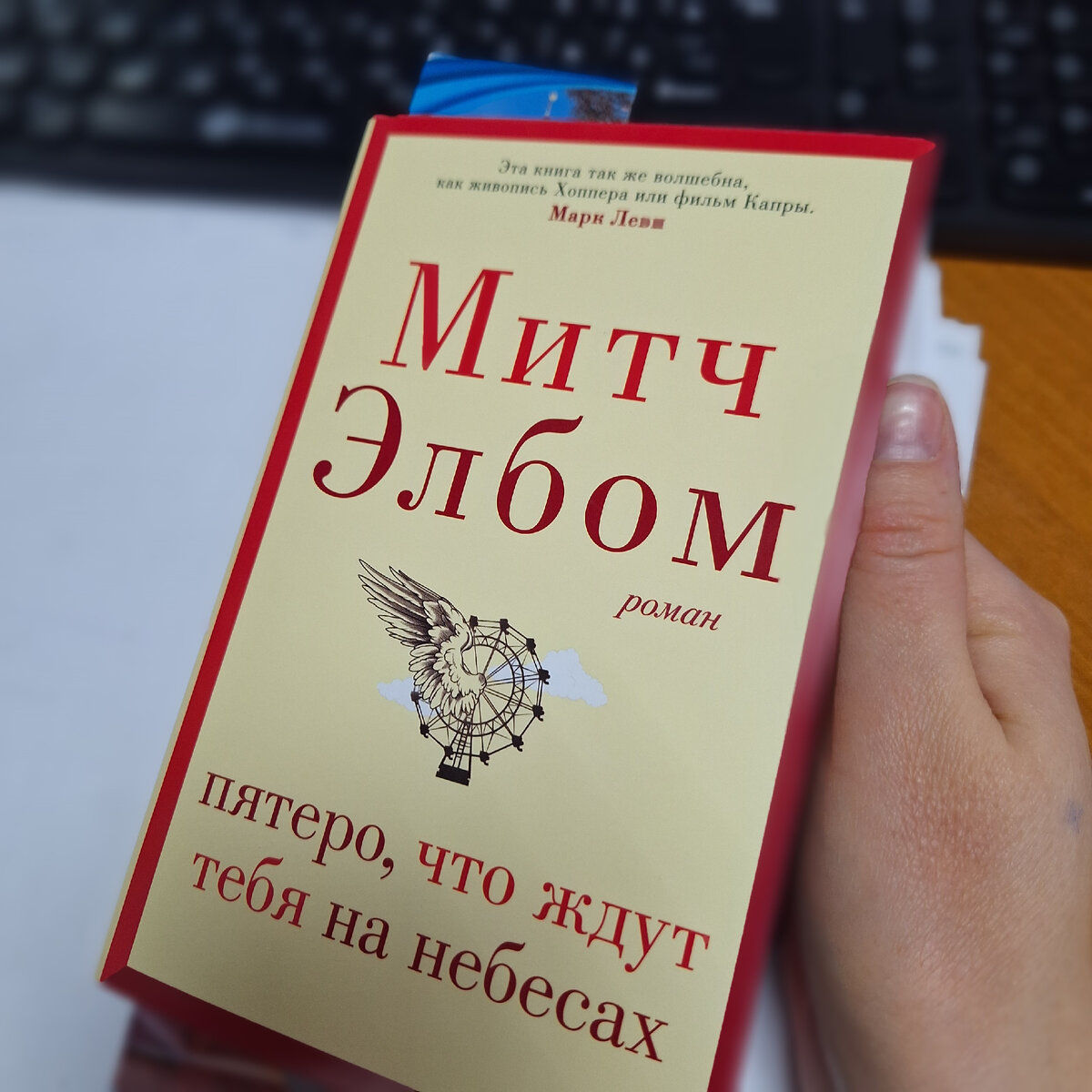 Здравствуйте, уважаемые читатели! Обычно я начинаю читать те книги, которые точно заинтересовали меня сюжетом, аннотацией, отзывами или иллюстрациями. И в основном дочитываю их до конца. Но бывают и такие произведения, которые просто бросаю, не дойдя до конца. Плохо это или хорошо? Некоторое время назад я буквально на одном дыхании за один день прочитала великолепный документальный роман Митча Элбома "Вторники с Морри, или Величайший урок жизни". Эта книга, он которой невозможно оторваться. Особенно, когда понимаешь, что все это происходило на самом деле. Трагично, пронзительно, поучительно! Вслед за биографией автор выпустил уже художественный роман "Пятеро, что ждут тебя на небесах". Вот что гласит аннотация: Роман повествует о старике Эдди, технике-смотрителе парка развлечений, ценой своей жизни спасшем девочку во время поломки одного из аттракционов. Оказавшись за последней чертой, Эдди встречает души пятерых людей, знакомых и незнакомых: одни оставили заметный след в его судьбе,