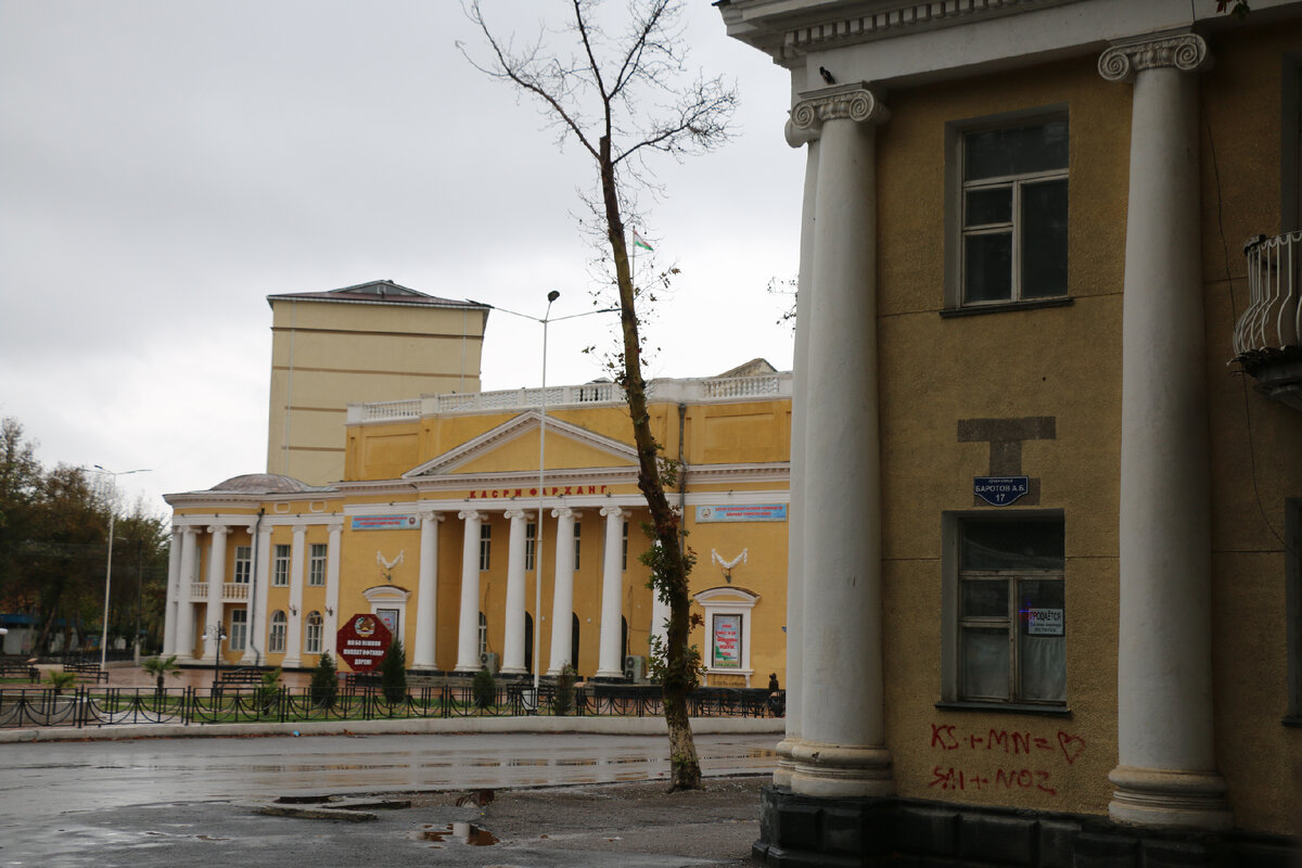 Ансамбль, сформировавшийся в центре таджикистанского Чкаловска - один из лучших образцов цельной застройки небольшого города в стиле сталинского ампира на всём постсоветском пространстве.