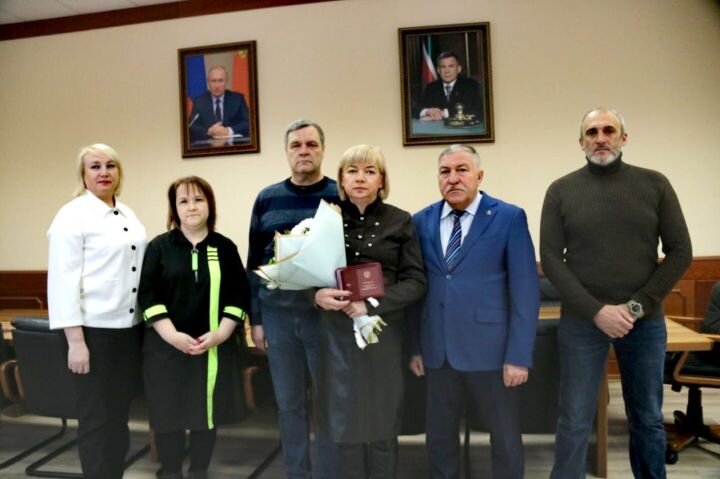 «Указом Президента Российской Федерации от 26 июля 2023 года за мужество, отвагу и самоотверженность, проявленные при исполнении воинского долга, наградить орденом Мужества Насыбуллина Рената Рустамовича – рядового. Посмертно.» Удостоверение к награде и цветы вручены матери Зумаре Хайдаровне. Рягат Галиагзамович поблагодарил родителей героя за воспитание сына – патриота нашей Родины. «Вы воспитали настоящего мужчину, защитника Отечества, мы все им гордимся», - сказал он. Зумара Хайдаровна выразила пожелание, чтобы в школе № 5, в которой обучался их сын, была установлена мемориальная табличка, а в музее история о бесстрашном и отважном воине – Ренате. Фото: Ильмира Гареева.