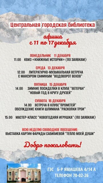 АФИША НА ЭТУ НЕДЕЛЮ С 11 ПО 17 ДЕКАБРЯ