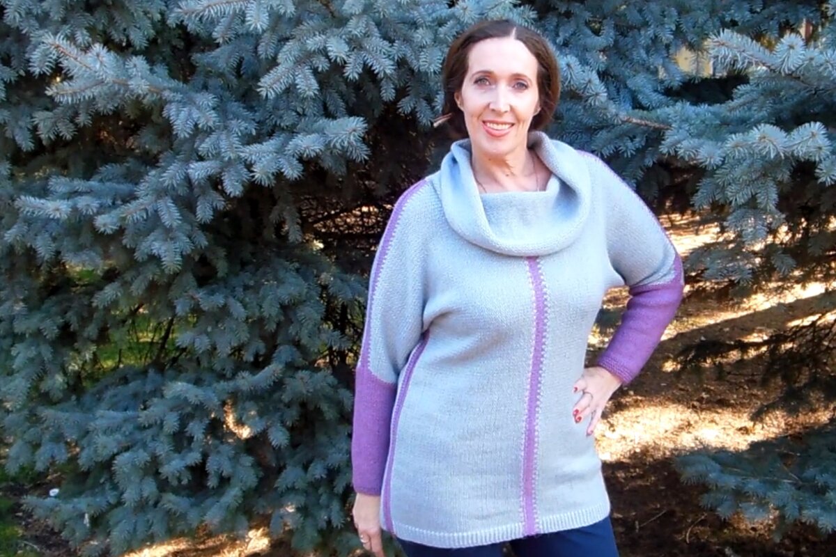 Поперечное вязание - несложная и интересная техника вязания. Направления вязание идет не снизу вверх - вертикально, а горизонтально. Вязать в этой технике можно спицами и крючком. В этой технике совсем по другому будут смотреться традиционные узоры, полосы располагаются вертикально, а в пряже секционного крашения красиво лягут цветные переходы. Разобраться в технике, Вам поможет описание свитера, который я связала себе в прошлом году. По описанию, Вы поймете технику, а внеся свои коррективы, другие узоры, изменив вырез горловины или длину рукава, Вы получите свое уникальное изделие. Описание: Пряжа: Alize Angora Gold - 100гр/550м; 80% акрил, 20% шерсть. серый №21; сиреневый №28. Расход пряжи: 450 гр (серой) и 125 гр (сиреневой). Спицы: №5 и №6. Вязала в 2-е нити. Описание сделала на схеме, так будет понятнее. Набрать на спицы № 6 (серого цвета) - 27(29)31 п, в зависимости от размера - M(L)XL - я вязала размер XL . 1-й ряд в расчете не учитывается; все петли изнаночные; дальше узор - и