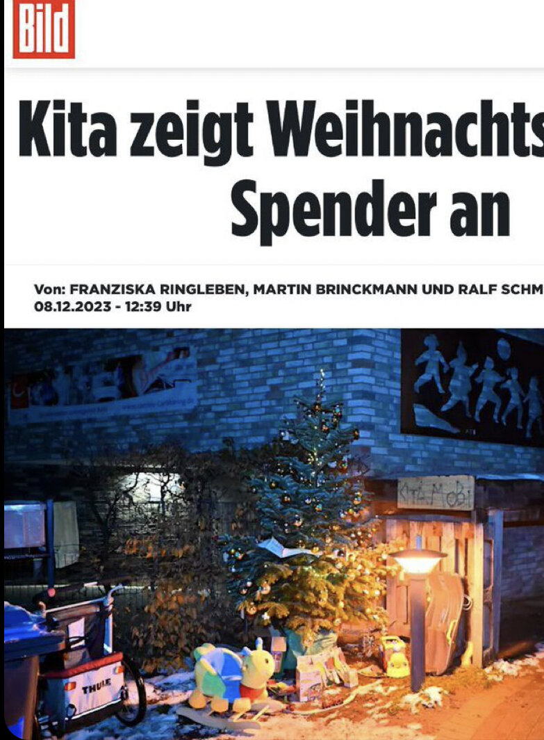 Руководство детского сада Kita Mobi в Гамбурге решило оставить своих воспитанников без рождественской ёлки, чтобы не оскорблять чувства «нехристиан». Владелец магазина растений Флориан Шредер ночью привёз детям нарядную ёлку и установил прямо перед входом. Под деревом он положил подарки.