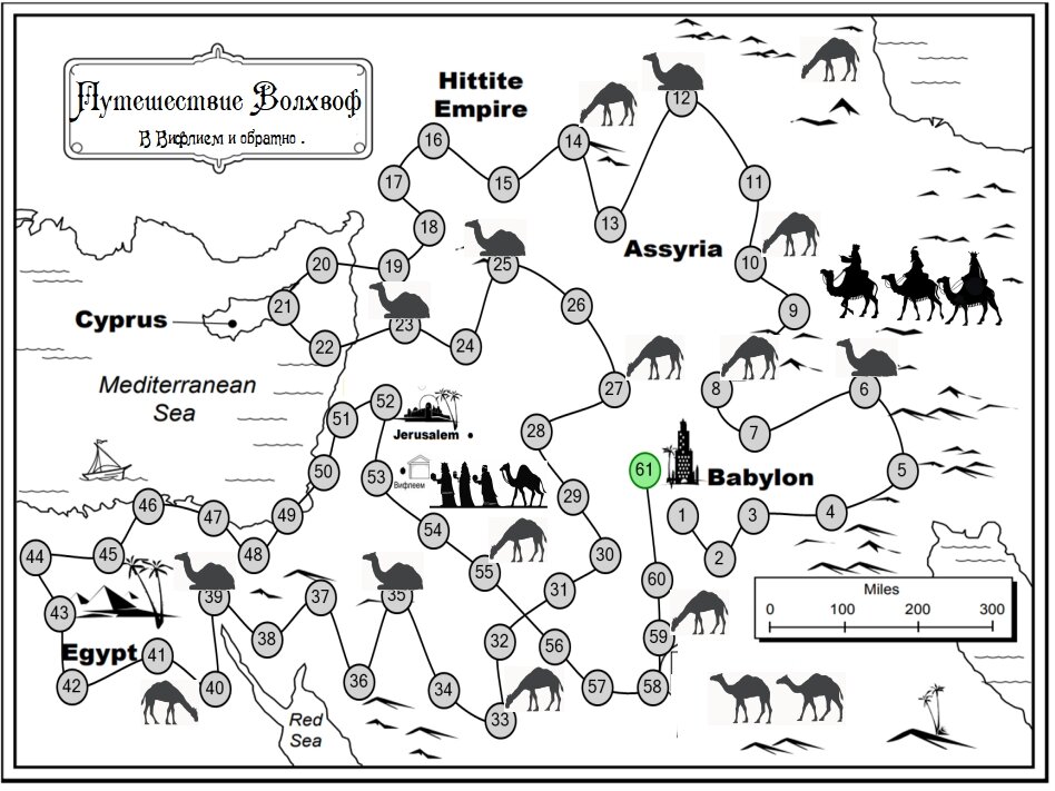 Когда родился Иисус, пришли в Иерусалим волхвы с востока. Волхвами назывались люди ученые, обладавшие большими знаниями, в особенности в области астрономии. В Вавилоне и Персии они пользовались особым уважением, бывали жрецами и советниками царей. Говоря, что пришли в Иерусалим волхвы с востока (Мф. 2, 1), Евангелист не поясняет, откуда именно они пришли. Иустин мученик, Епифаний и Тертуллиан полагали, что волхвы пришли из Аравии; Иоанн Златоуст и Василий Великий — из Персии, а Блаженный Августин — из Халдеи. Вероятнее всего, они пришли из страны, составлявшей прежде Вавилонское царство, так как там, во время семидесятилетнего плена евреев, предки волхвов, явившихся в Иерусалим, имели возможность узнать от ученых евреев, что они ждут Избавителя, Великого Царя, Который покорит весь мир; там же жил пророк Даниил, и из откровения ему о седьминах волхвы могли знать приблизительно и время пришествия этого Царя; — там же, наконец, должно было сохраниться предание и о пророчестве волхва Валаама (времен Моисея), сказавшего: Вижу Его, но ныне еще нет; зрю Его, но не близко. Восходит звезда от Иакова и восстает жезл от Израиля (Числ. 24, 17; см. также Ис. 11, 10-16; 60, 6). Есть предание что волхва были из разных стран , значит прежде чем идти к младенцу Иисусу они должны были собраться вместе . Карта - игра . Пройди вместе с волхвами по всему древнему ближневосточному миру и "иным путём" вернитесь в Вавилон . Игра для Рождественского вечера . Можно попросить ребёнка заранее её раскрасить . Распечатав на большом формате и раскрасив можно использовать как элемент рождественского декора . Если играет группа детей то после броска кубика можно задавать вопрос на библейскую тему и ходить фишкой только после правильного ответа а иначе пропуск хода .