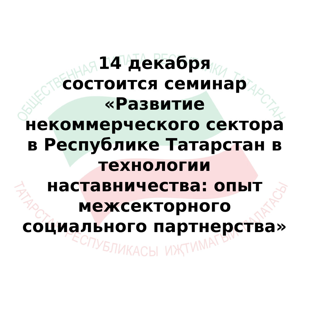 В ОП РТ состоится семинар «Развитие некоммерческого сектора в Республике Татарстан в технологии наставничества: опыт межсекторного социально