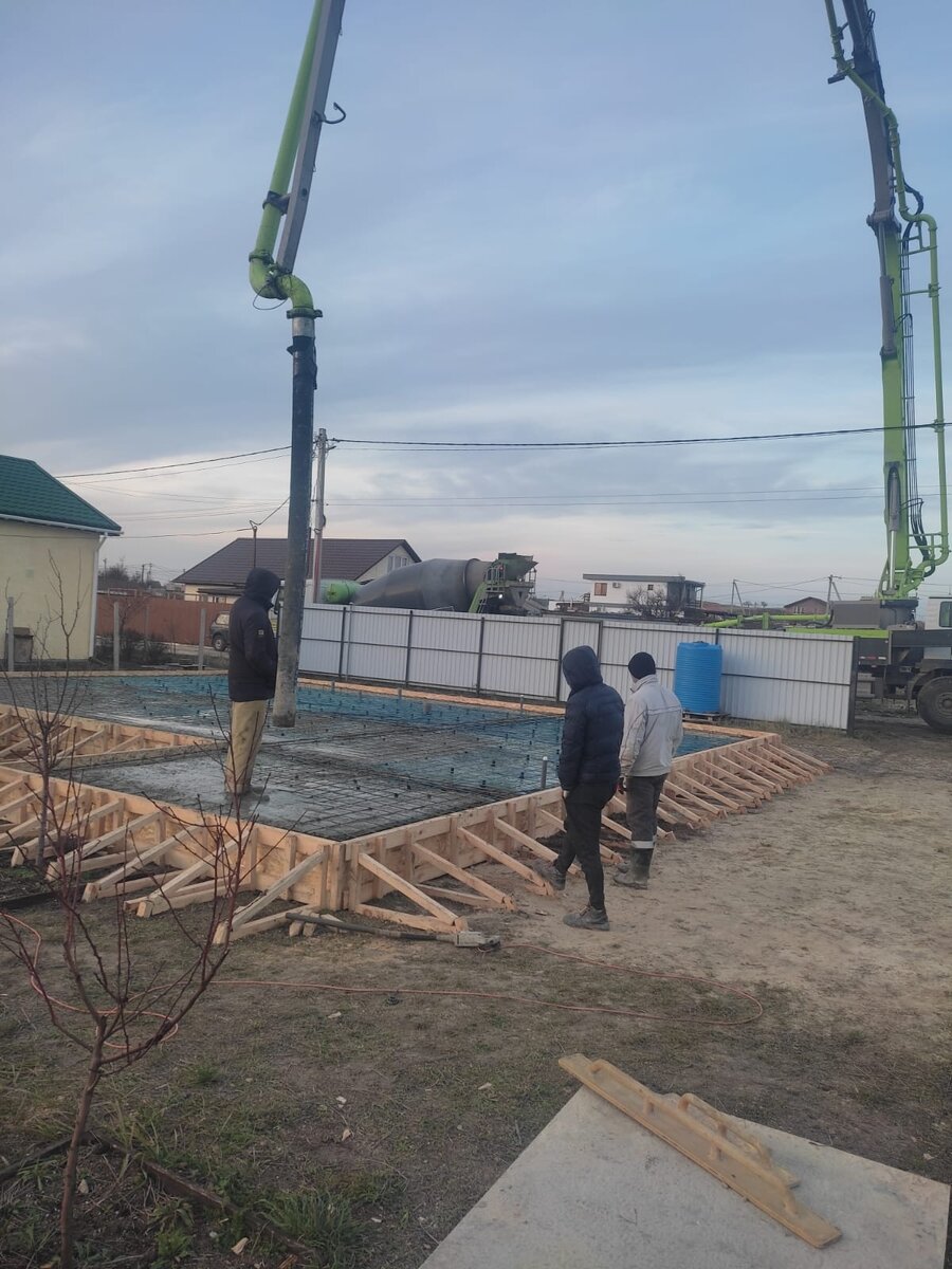 Добрый день, друзья! Очередной дом строится в Керчи, и как большинство наших СИП домов, на бетонном фундаменте. Давайте вспомним преимущества бетонного: прочность, долговечность, простота в отделке, не нужно часто обслуживать и прочное основание 1-го этажа, возможность сделать “тёплые полы” и постелить плитку.