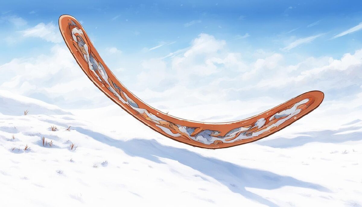 Я подбежал к бумерангу, он одиноко лежал на твёрдом и бугристом ледяном насте. От верхнего слоя, красиво покрашенной фанеры, откололся маленький треугольный кусочек. Наверное, это случилось в момент удара о лёд.