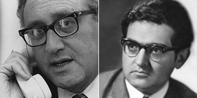 Встречаются советский писатель и политобозреватель Валентин Зорин с госсекретарём Генри Киссинджером.