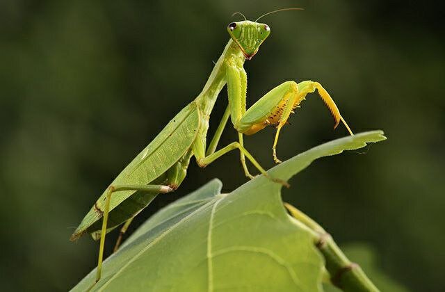 Стоит какому-нибудь насекомому появиться рядом, как богомол молниеносно выбрасывает вперёд сложенные ноги и хватает жертву.