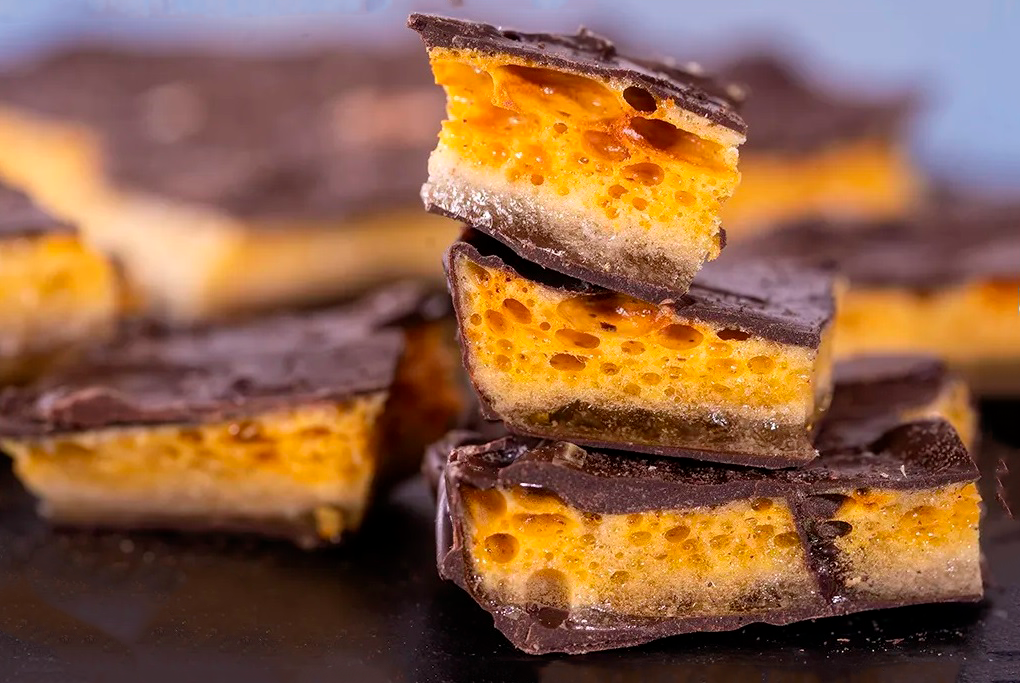 Этот Шоколадный ирис с сотами легко приготовить конфету который можно приготовить дома всего из шести простых ингредиентов. Благодаря своей восхитительной сладости, приятному хрусту и оттенку полусладкого шоколада, балансирующему вкус, он идеально подходит для того, чтобы побаловать себя дома или принести на вечеринку. Трудно удержаться от одного кусочка, ведь каждый захочет большего! Как приготовить шоколадно-сотовый ирис Может показаться, что это сложно сделать, но на самом деле это очень просто. Вам обязательно понадобится термометр для приготовления пищи и внимательно выполняйте все этапы рецепта, так как вам предстоит работать с очень горячим блюдом. Начните с застилания пергаментной бумагой квадратной формы для выпечки диаметром 8 дюймов (20 см) и глубиной не менее 2,3 дюйма (6 см). В большой кастрюле смешайте воду, сахар, глюкозу и мед. Нагревайте, пока ингредиенты не растворятся. Поместите термометр в кастрюлю и дайте ингредиентам закипеть, пока температура не достигнет 295 F