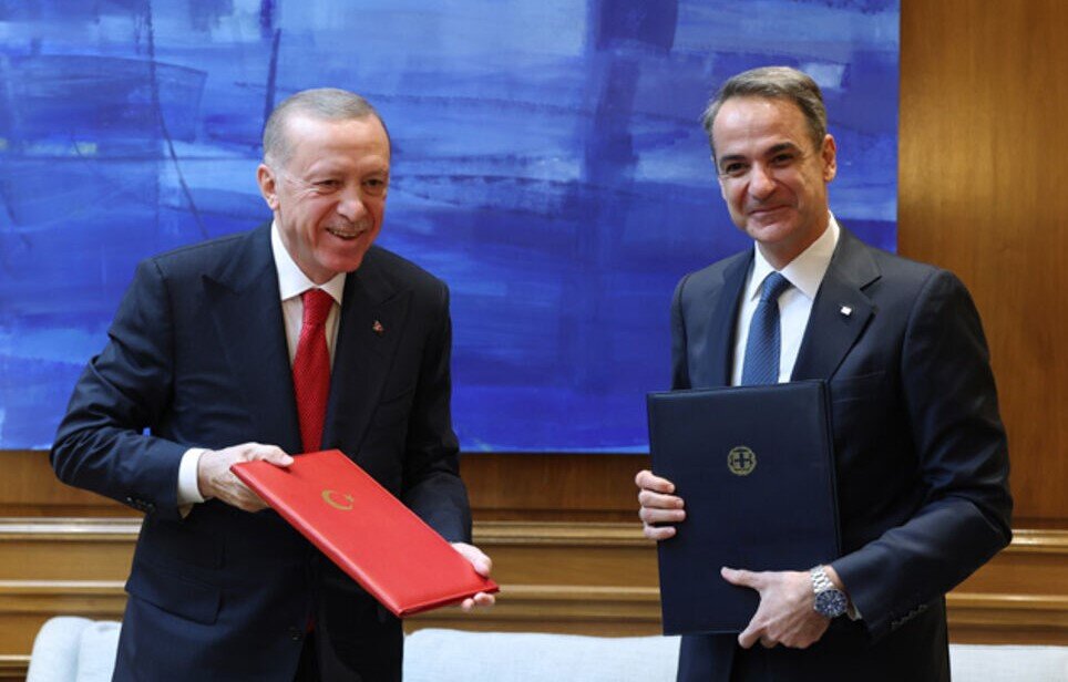И вот – удивительное дело, не правда ли? – не только встретился, но и подписал с тем самым Мицотакисом полтора десятка соглашений, включая договор о дружбе и добрососедстве, что, учитывая не только вышеупомянутые споры, но и стародавний спор на Кипр и настырные попытки продавить признание марионеточной «Турецкой Республики Северный Кипр», является весьма серьёзным достижением. Документом предусмотрено проведение консультаций по мерам доверия, включая военные ведомства двух стран, призванные «способствовать устранению ненужных источников напряженности и связанных с ними рисков». Имеются и подвижки в вопросе выдачи греческими властями турецким гражданами виз на посещение некоторых островов в Эгейском море – вроде бы мелочь, но вполне показательная. Встречи с президентом Катериной Сакелларопулу и премьером Кириакосом Мицотакисом, называвшим собеседника «дорогой Тайип», прошли в подчеркнуто конструктивной и дружелюбной атмосфере. На публику последовали заявления о «новой эре» в двусторонних отношениях, о необходимости быть оптимистами, что принесёт плоды в будущем, о наполовину полном стакане и прочие любезности.